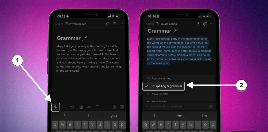 1. تصحيح الأخطاء الإملائية باستخدام Notion AI