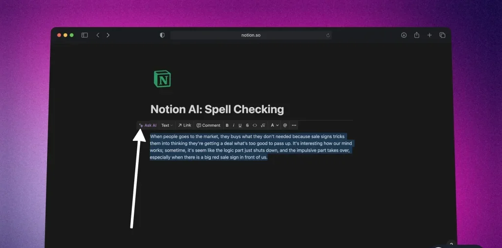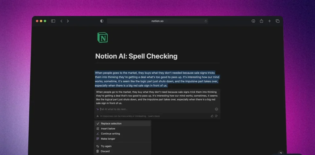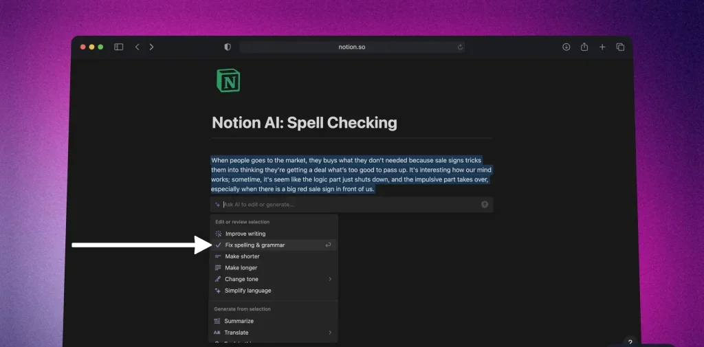 1. تصحيح الأخطاء الإملائية باستخدام Notion AI