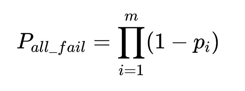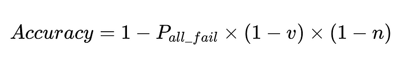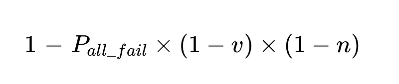 إن احتمال فشل عاملين مستقلين على نفس المدخلات هو احتمال دقة كلا العاملين مضروبًا معًا: