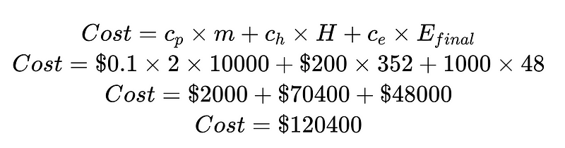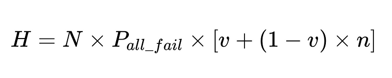 • c_h = تكلفة التدخل البشري الواحد (200 دولار أمريكي على سبيل المثال: 4 ساعات بسعر 50 دولارًا/للساعة)