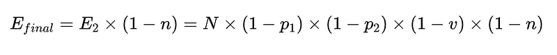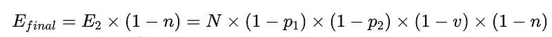 • n = فعالية المدقق السلبي (negative checker) (0.6 في مثالنا)
