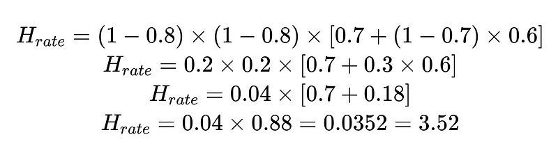 • H = عدد الحالات التي تتطلب تدخلًا بشريًا (352 من مثالنا)