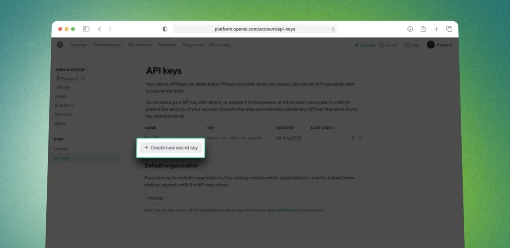• API: ستحتاج إلى الحصول على API مثل API الخاص بـ OpenAI لهذا الغرض.