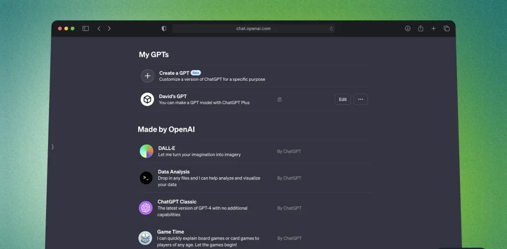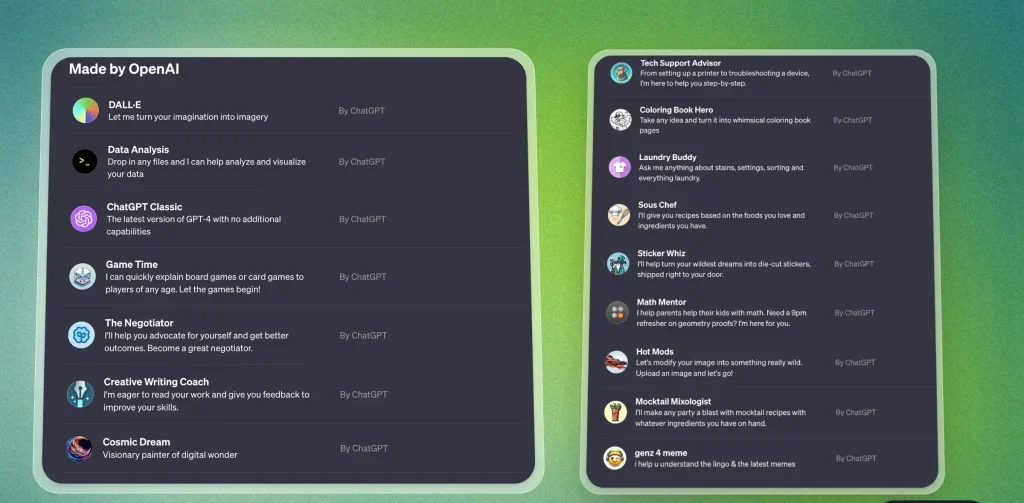 - نماذج GPTs: نماذج جديدة تمامًا تقوم أنت بتخصيصها بدون ترميز.