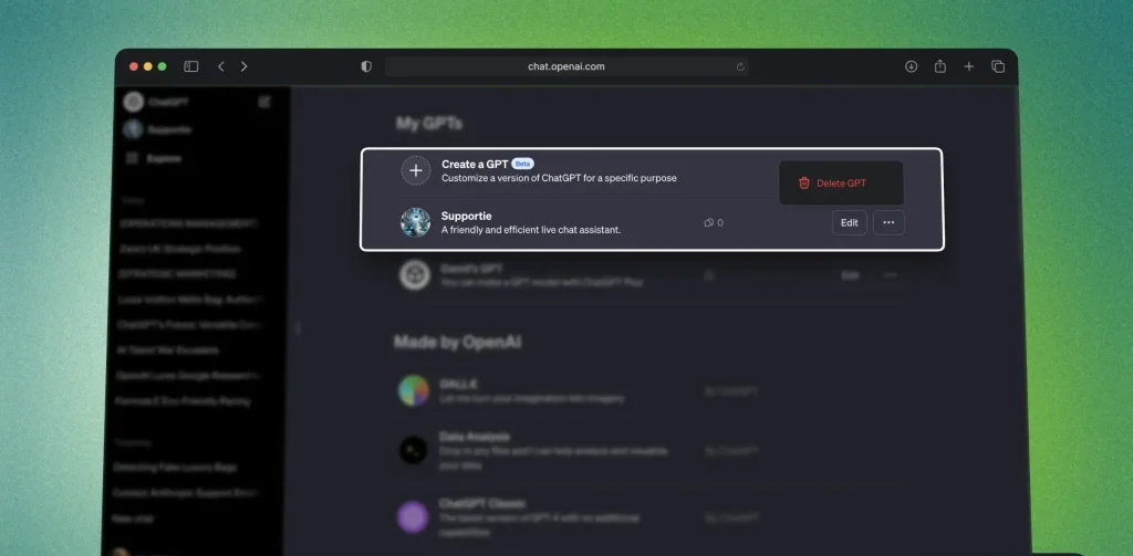 تهانينا! لقد تم حذف النموذج الخاص بك الآن بنجاح. هذه العملية ضرورية لإدارة نماذج GPT الخاصة بك بكفاءة.