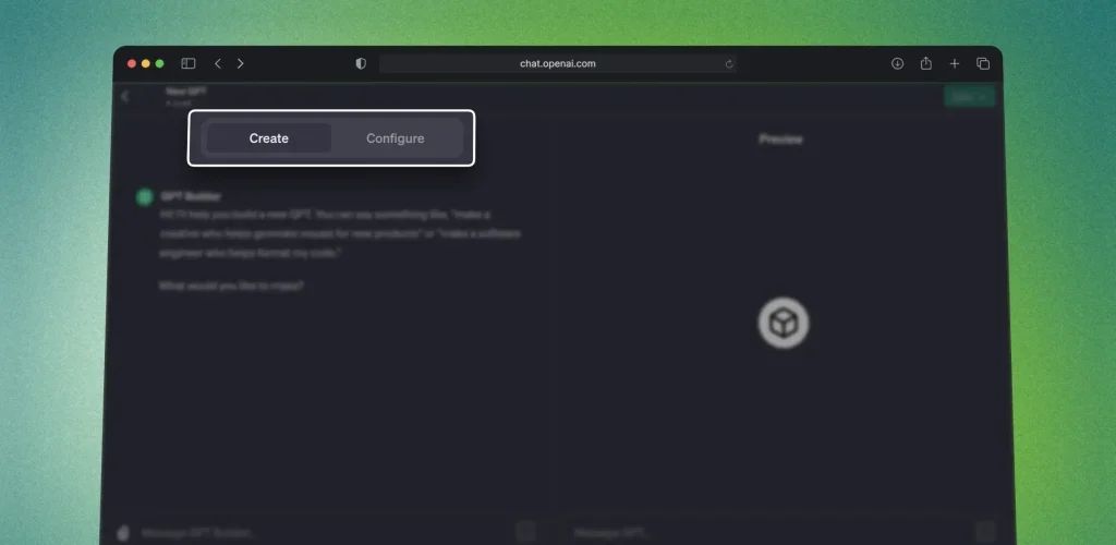 افتح GPT Builder- انتقل إلى “Configure” في الأعلى