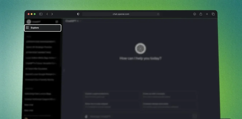 افتح ChatGPT- اضغط على “Explore” (استكشاف)