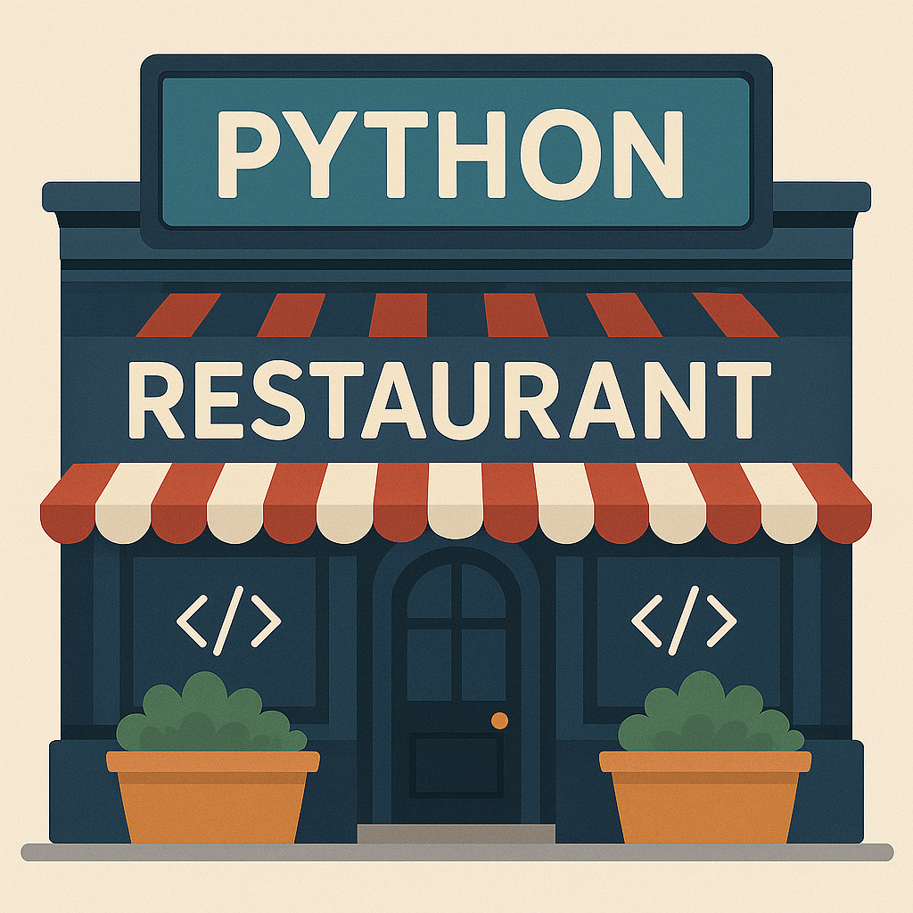 - Restaurant() و Menu() هما فئتان (classes). نقوم بتعريفهما، وسيتم تحديد جميع الطاولات والطلبات ومعلومات النظام داخل الفئات وتحديثها ديناميكيًا.