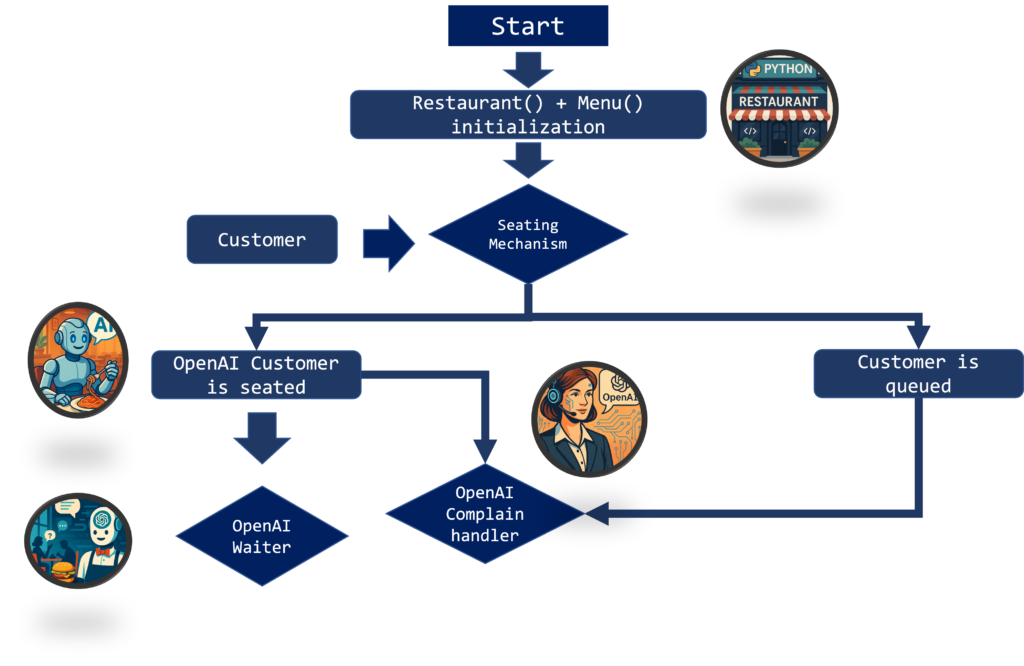 محاكاة مطعم متعدد الوكلاء باستخدام نماذج اللغات الكبيرة (LLM) عمليًا، مع Python و OpenAI