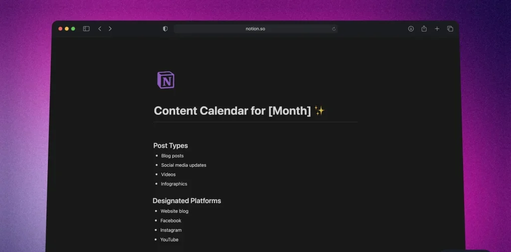 المُطالبة: “صمم تقويم محتوى للشهر القادم يتضمن أنواع المنشورات، والمنصات المخصصة، وأوقات النشر المستهدفة.”
