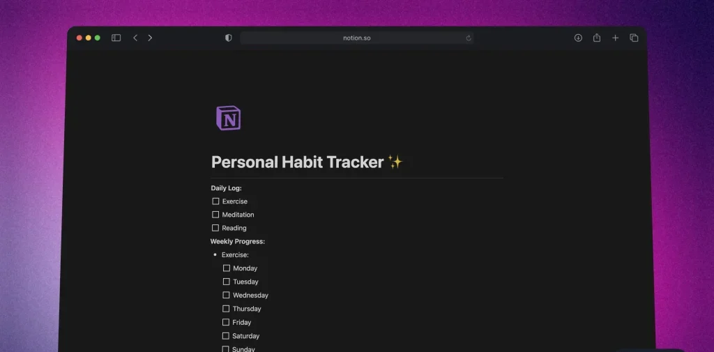 المُطالبة: “أنشئ نظامًا شخصيًا لتتبع العادات يسجل الأنشطة اليومية مثل التمرين والتأمل والقراءة، ويعرض التقدم الأسبوعي.”
