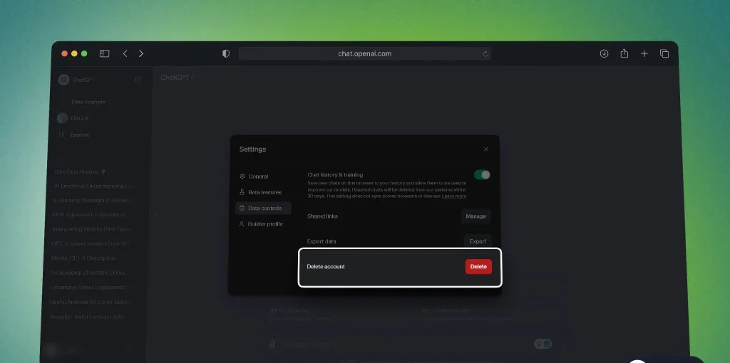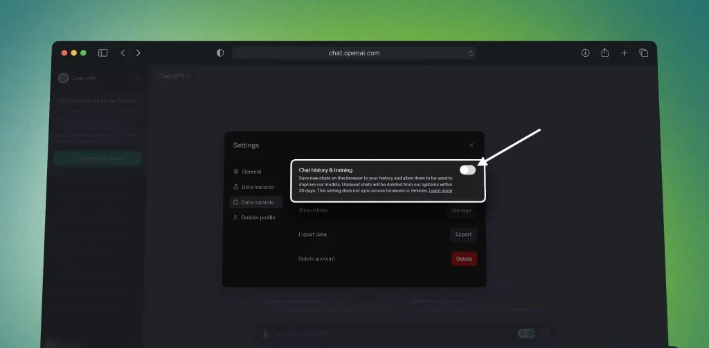 لإدارة سجل الدردشة الخاص بك، انتقل إلى “Settings > Data Controls” في ChatGPT. هذه الخطوة ضرورية للحفاظ على خصوصية بياناتك والتحكم في كيفية استخدامها.