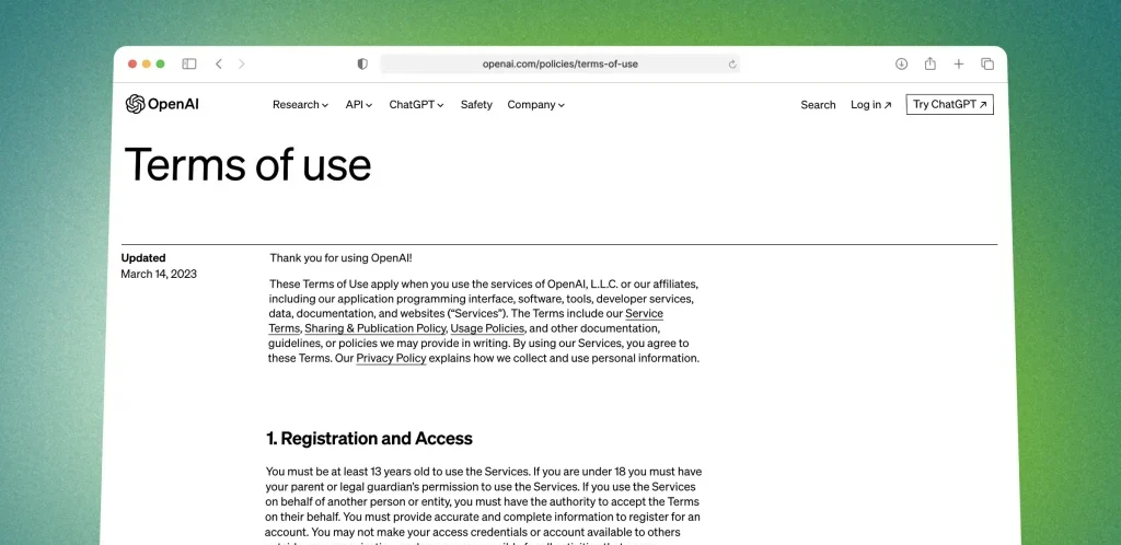 راجع سياسة OpenAI و شروط الخدمة الخاصة بها – وليس فقط سياسة الخصوصية!