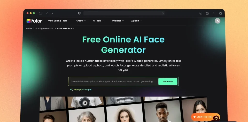 6. Fotor: مولد وجوه بالذكاء الاصطناعي سهل الاستخدام