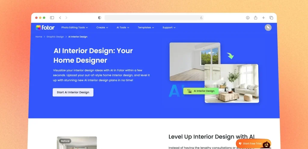 9. Fotor: أداة تصميم داخلي مدعومة بالذكاء الاصطناعي