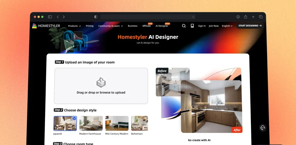 انضموا إلينا، ودعونا نجد الأداة المناسبة لتصميمكم الداخلي باستخدام الذكاء الاصطناعي.