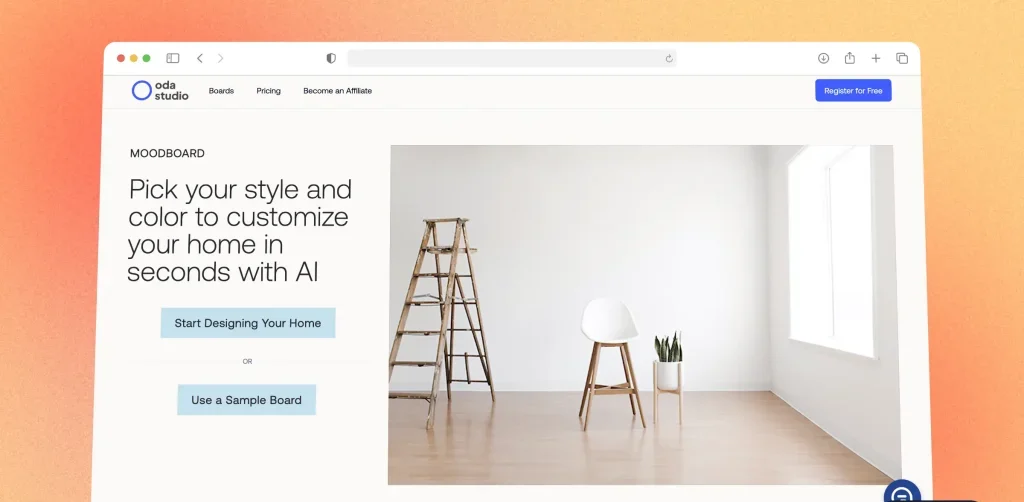 سجل الآن عبر الموقع الرسمي: odastudio.ai. يعتبر Oda Studio منصة متخصصة في التصميم المعماري باستخدام الذكاء الاصطناعي.
