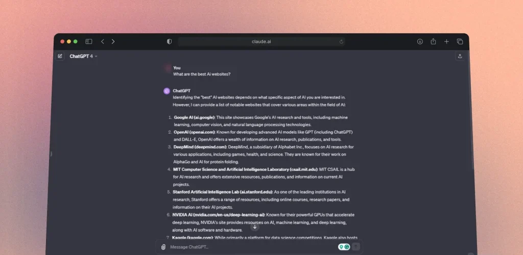 والأفضل من ذلك، يمكنك سؤال روبوتات الدردشة المدعومة بالذكاء الاصطناعي عن… أفضل مواقع الذكاء الاصطناعي؟