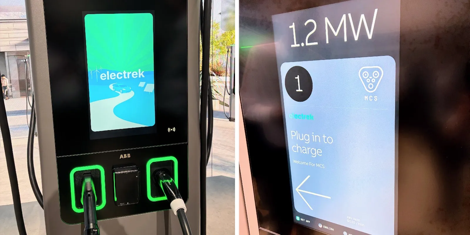 تستغل ABB E-mobility مؤتمر النقل النظيف السنوي لعرض توسعة محفظتها من معدات EVSE، وذلك من خلال ثلاث عائلات جديدة كليًا من الشواحن: شواحن A200/300 All-in-One القابلة للترقية ميدانيًا، ونظام MCS1200 Megawatt Charging System للمركبات الثقيلة (كما هو موضح أعلاه)، و ChargeDock Dispenser للشحن المرن في المستودعات.