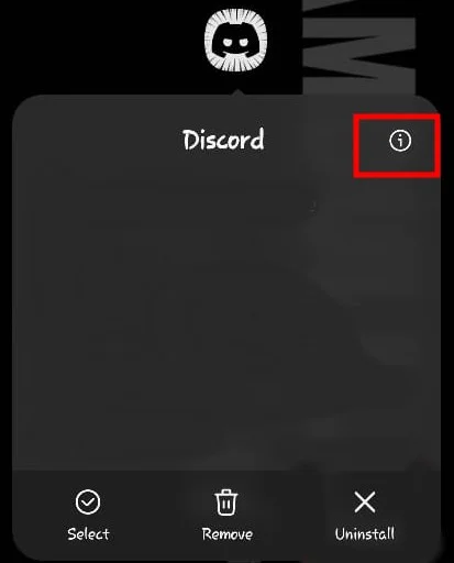 1. اضغط مطولاً على أيقونة Discord وانقر على أيقونة معلومات التطبيق.
