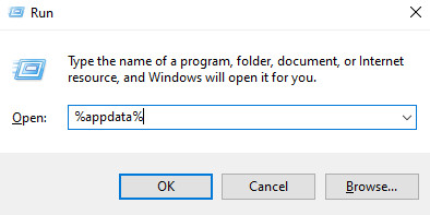 1. اضغط على Windows + R، واكتب %appdata%، ثم اضغط على Enter.
