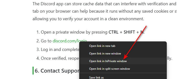قد تتداخل البيانات المخزنة مؤقتًا في تطبيق Discord أو المتصفح أحيانًا مع عملية التحقق. يضمن استخدام نافذة تصفح متخفٍ أو خاصة بيئة نظيفة بدون ملفات تعريف الارتباط أو الجلسات المحفوظة، مما يساعد على إكمال التحقق بنجاح.