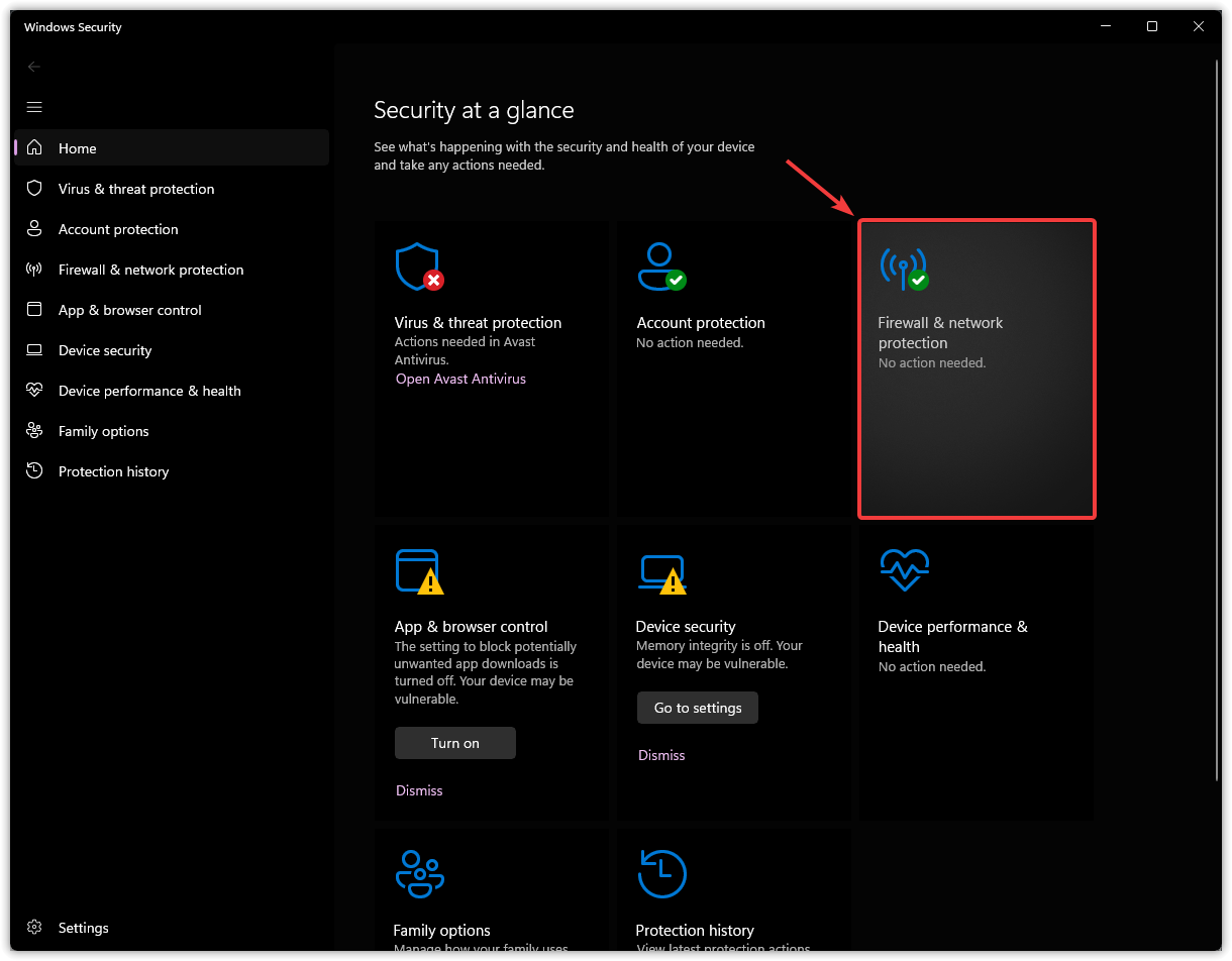- انقر على جدار الحماية وحماية الشبكة.