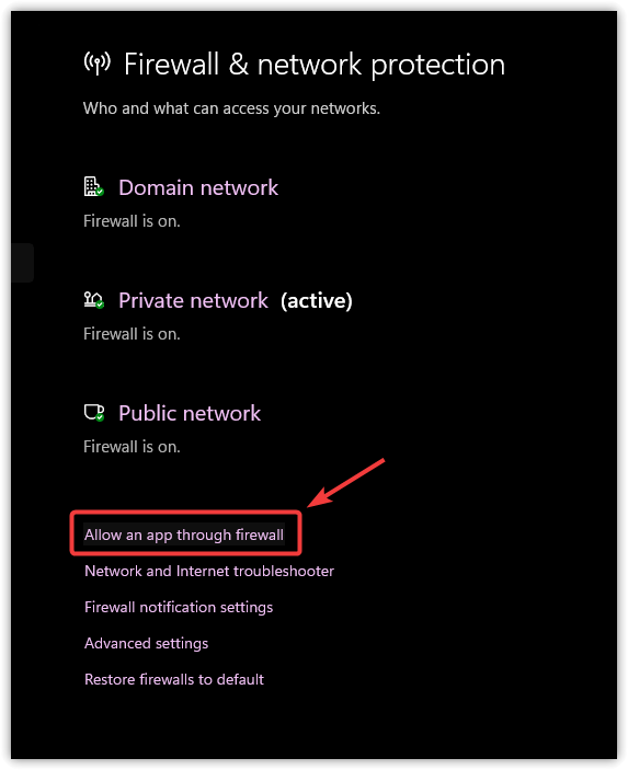 - اختر السماح لتطبيق بالمرور عبر جدار الحماية.