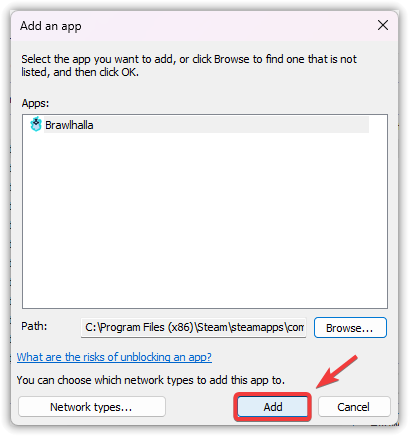 - أضف أيضًا الملف التنفيذي للعبة التي تحاول تشغيلها (على سبيل المثال، Overwatch.exe أو ModernWarfare.exe).