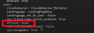 - ابحث عن السطر الذي يقول offline: false وغيره إلى offline: true. احفظ الملف.