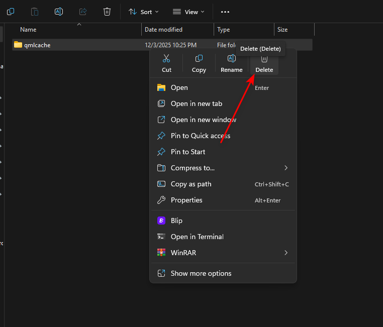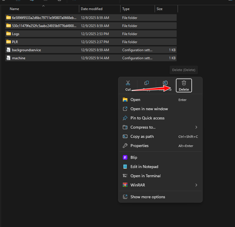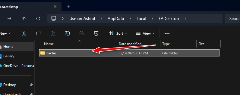 4. احذف كل شيء داخل cache (لا تحذف مجلد EA Desktop نفسه).