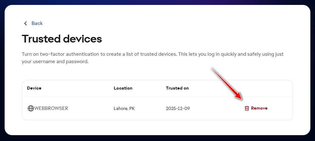 5. قم بإزالة الأجهزة الموثوق بها (أو على الأقل الجهاز المتأثر إذا كان بإمكانك تحديده).