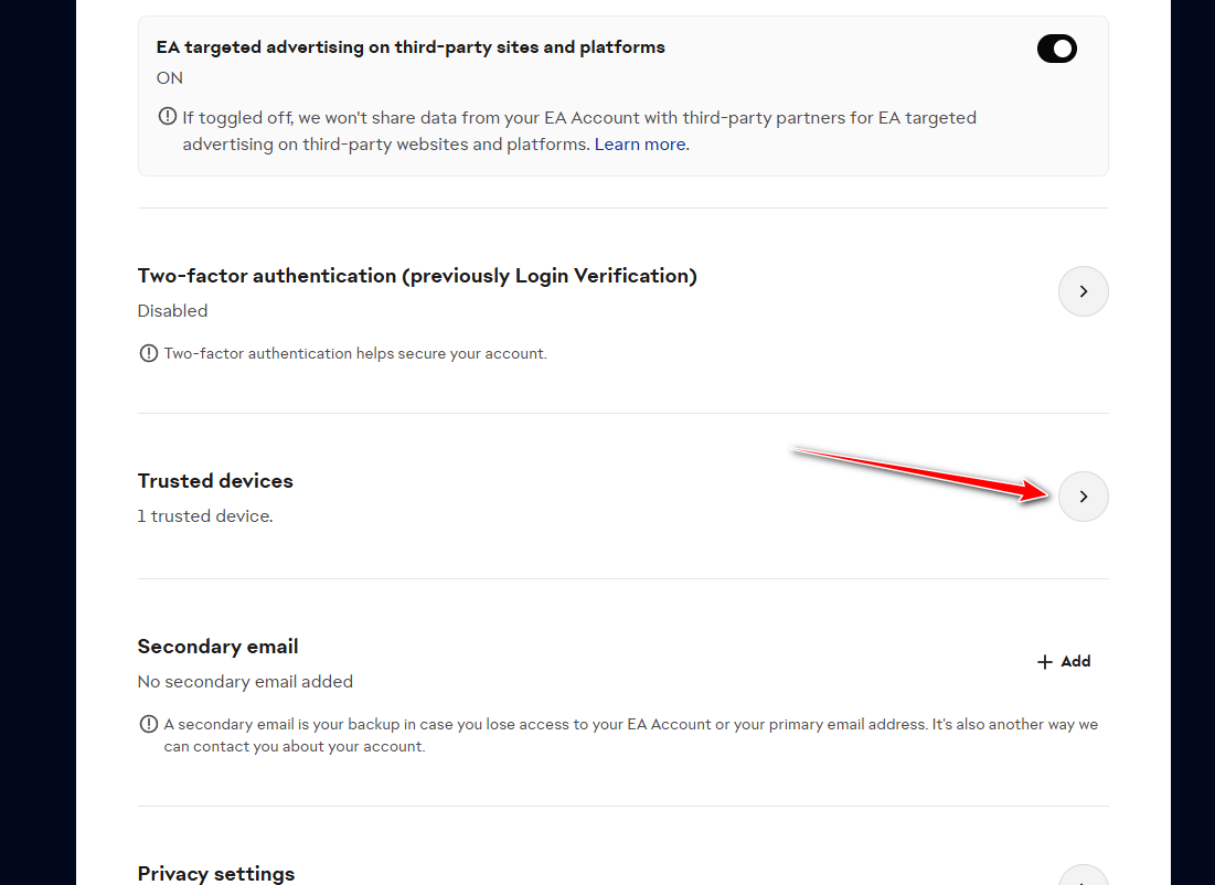 1. انتقل إلى صفحة إعدادات حساب EA.