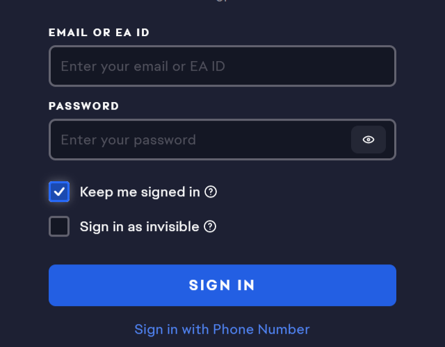 5. أعد فتح تطبيق EA، وسجل الدخول، وحدد خيار Keep me signed in (إبقائي مسجل الدخول).