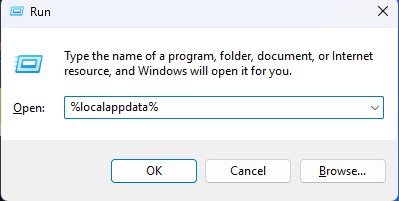 2. اضغط على Windows + R، واكتب %localappdata%، ثم اضغط على Enter.