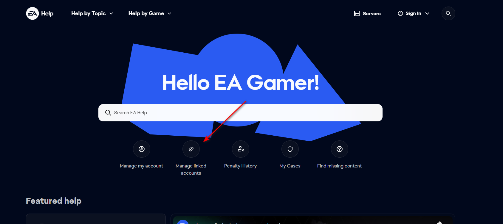 - حدد لعبتك (أو تطبيق EA) واختر تسجيل الدخول / ربط الحساب.