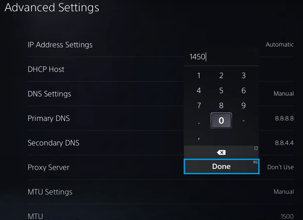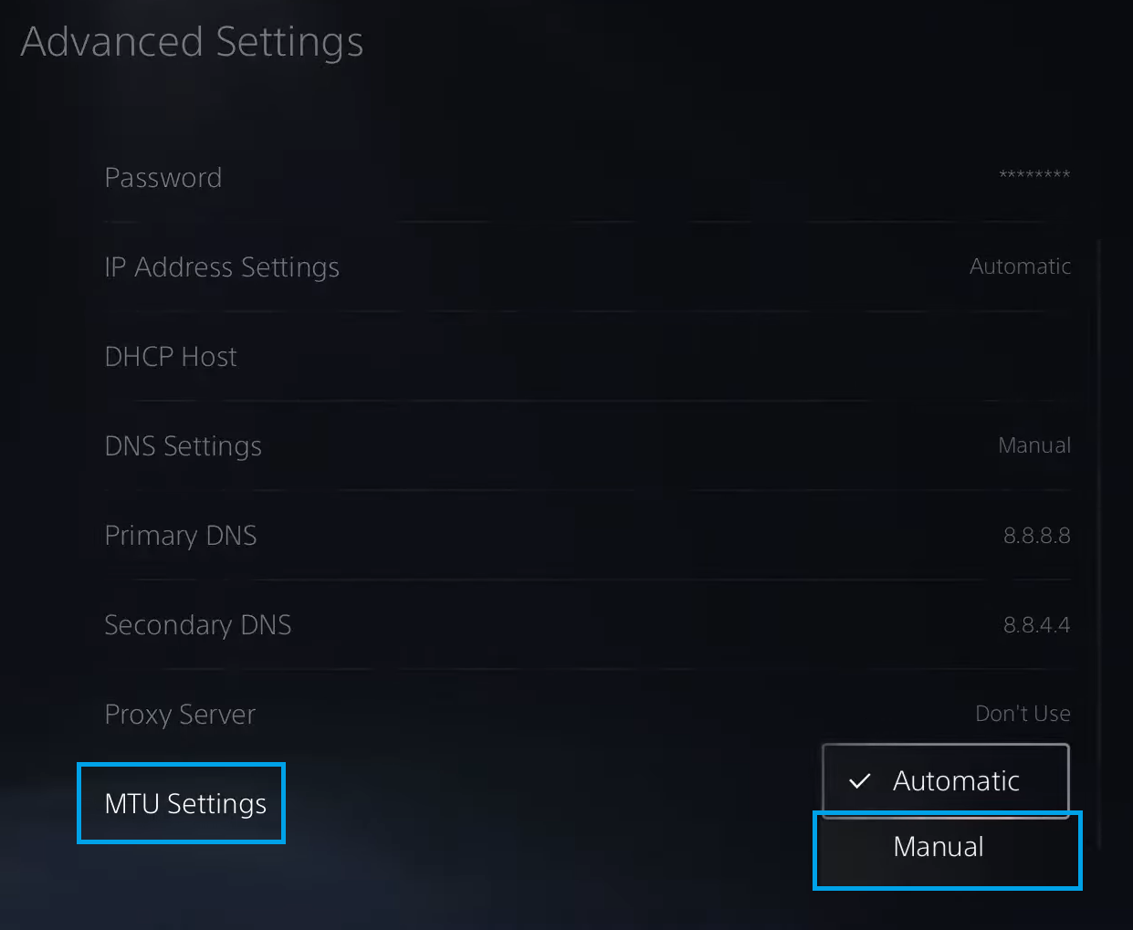 نصيحة: إذا كنت غير متأكد، يمكنك دائمًا إعادة MTU إلى تلقائي بعد الاختبار. هذا الإعداد يؤثر فقط على اتصال شبكة جهاز PS5 الخاص بك.