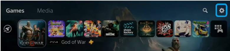 - على جهاز PS5 الخاص بك، انقر على خيار الإعدادات في القائمة الرئيسية.