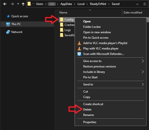 - إذا استمرت المشكلة، فقم بعمل نسخة احتياطية من مجلد ReadyOrNot عن طريق نسخه من: