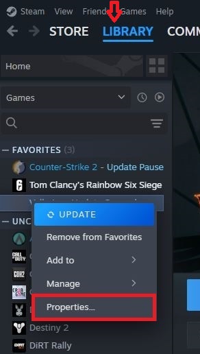 - بعد حذف الملفات المعدلة، افتح Steam وانتقل إلى قسم المكتبة (Library).