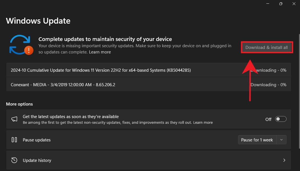 - إذا كان هناك أي تحديث متاح، فانقر على “تنزيل وتثبيت الكل”.