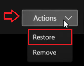 - إذا وجدت، حدد Actions (الإجراءات) > Restore (استعادة).