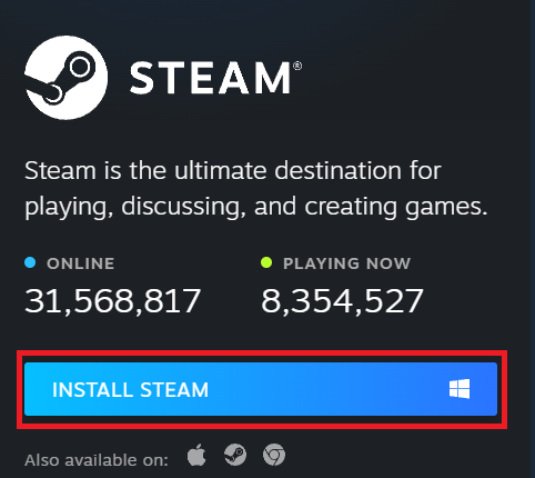 - قم بتنزيل وتثبيت Steam على جهاز الكمبيوتر الخاص بك.