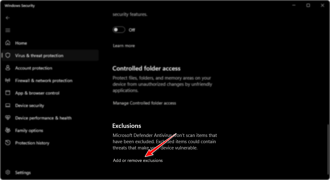 ملاحظة: إذا كنت لا تستخدم برنامج مكافحة فيروسات تابعًا لجهة خارجية، يوضح المثال التالي كيفية إضافة VALORANT إلى القائمة البيضاء في Microsoft Defender. العملية العامة متشابهة لمعظم برامج مكافحة الفيروسات.