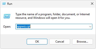 1. اضغط على Win + R، واكتب appwiz.cpl، ثم اضغط على Enter لفتح نافذة البرامج والميزات (Programs and Features).