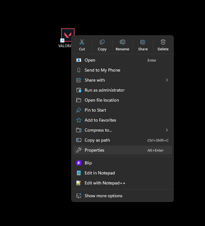 1. انقر بزر الفأرة الأيمن على اختصار VALORANT على سطح المكتب.