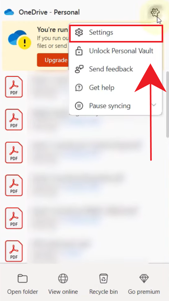 - انقر بزر الفأرة الأيمن على أيقونة OneDrive في علبة النظام (system tray).