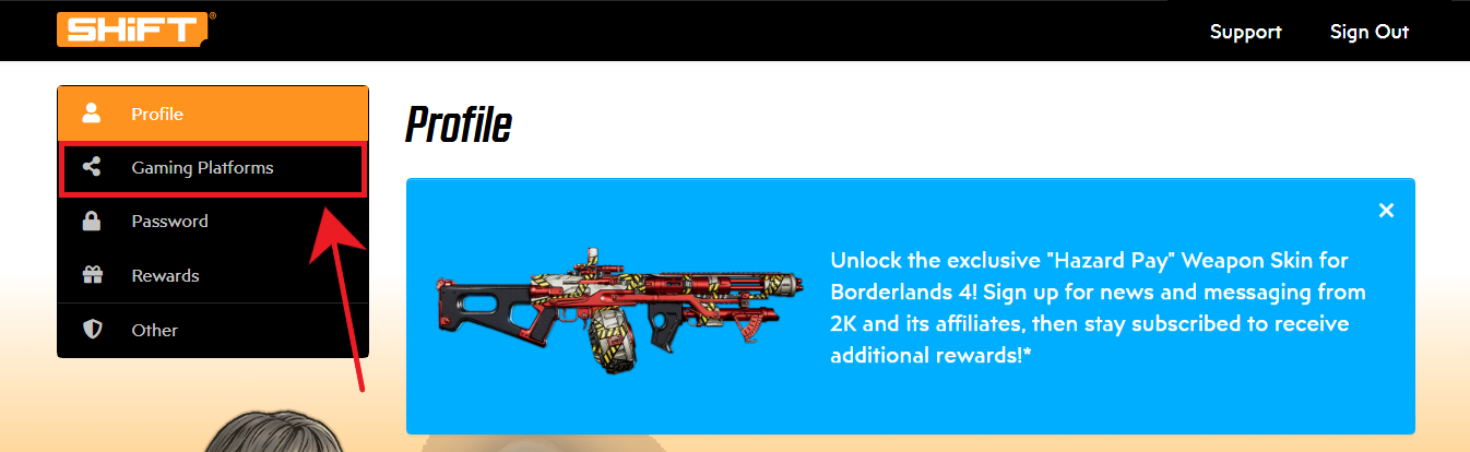 - زر الموقع الرسمي لـ SHiFT وسجّل الدخول.