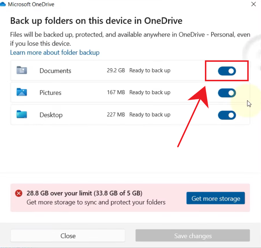 3. إيقاف تشغيل النسخ الاحتياطي لمستندات OneDrive