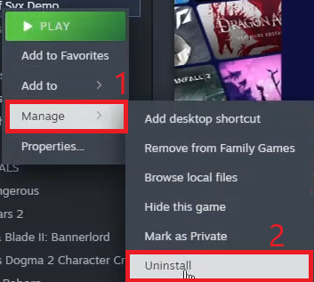 - انقر بزر الماوس الأيمن على Borderlands 4 واختر إدارة (Manage) > إلغاء التثبيت (Uninstall).